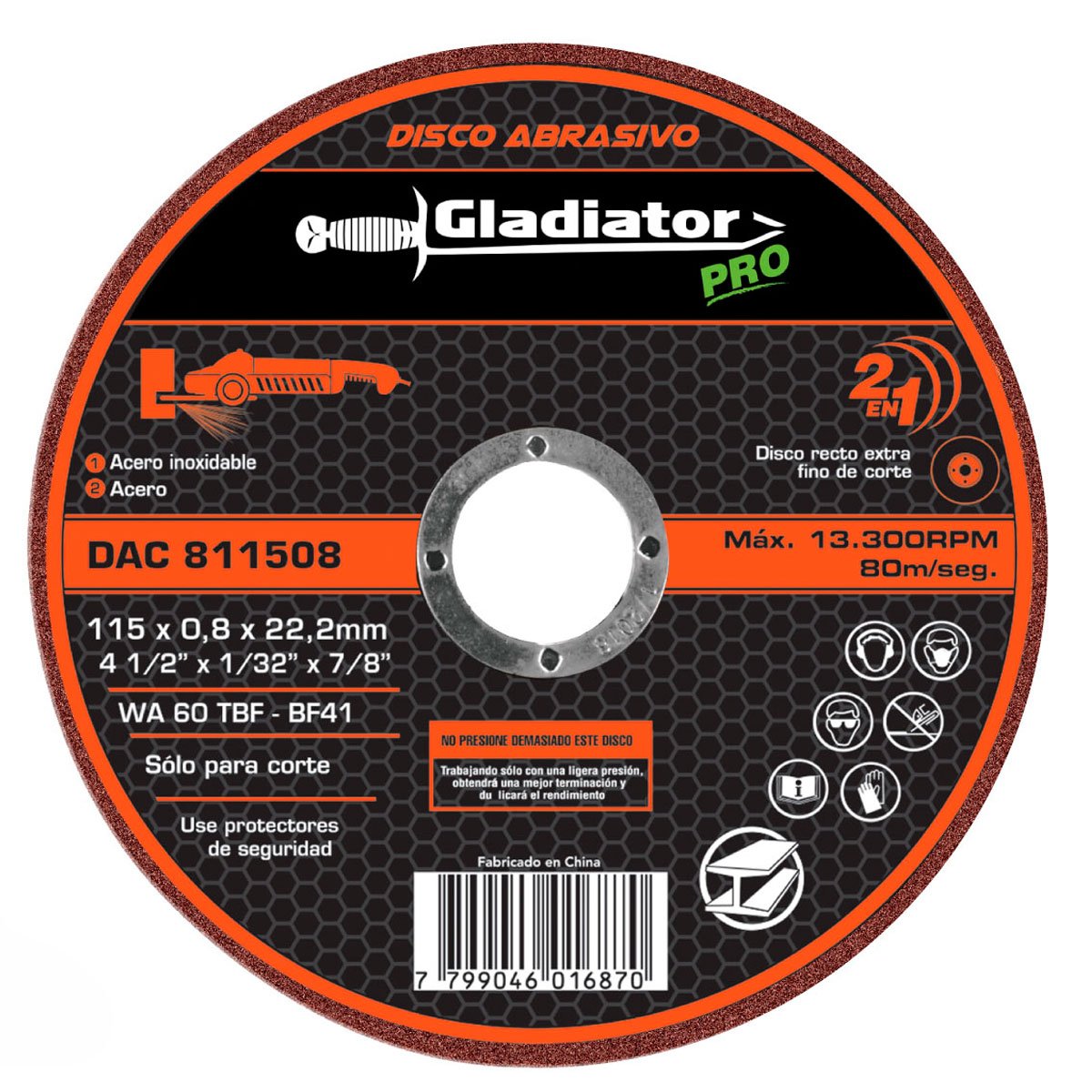 Disco de Corte Para Metal Gladiator 115 x 0.8 x 22,2mm DAC811505