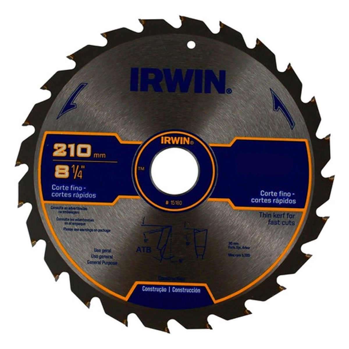 -Dientes de corte fino -Dientes alternados ATB -Rendimiento para cortes transversales -Diámetro exterior (mm): 210 mm (8-1/4”) -Perforación (mm-In): 30 mm -Anillo 1 (mm): 25 mm (1″) -Anillo 2 (mm): 16 mm (5/8″) -Grosor (mm): 3 mm -Base (mm): 2.2 mm -Dientes: 24 -Rastrillo: 12° -Forma del diente: ATB -Material: MADERA
