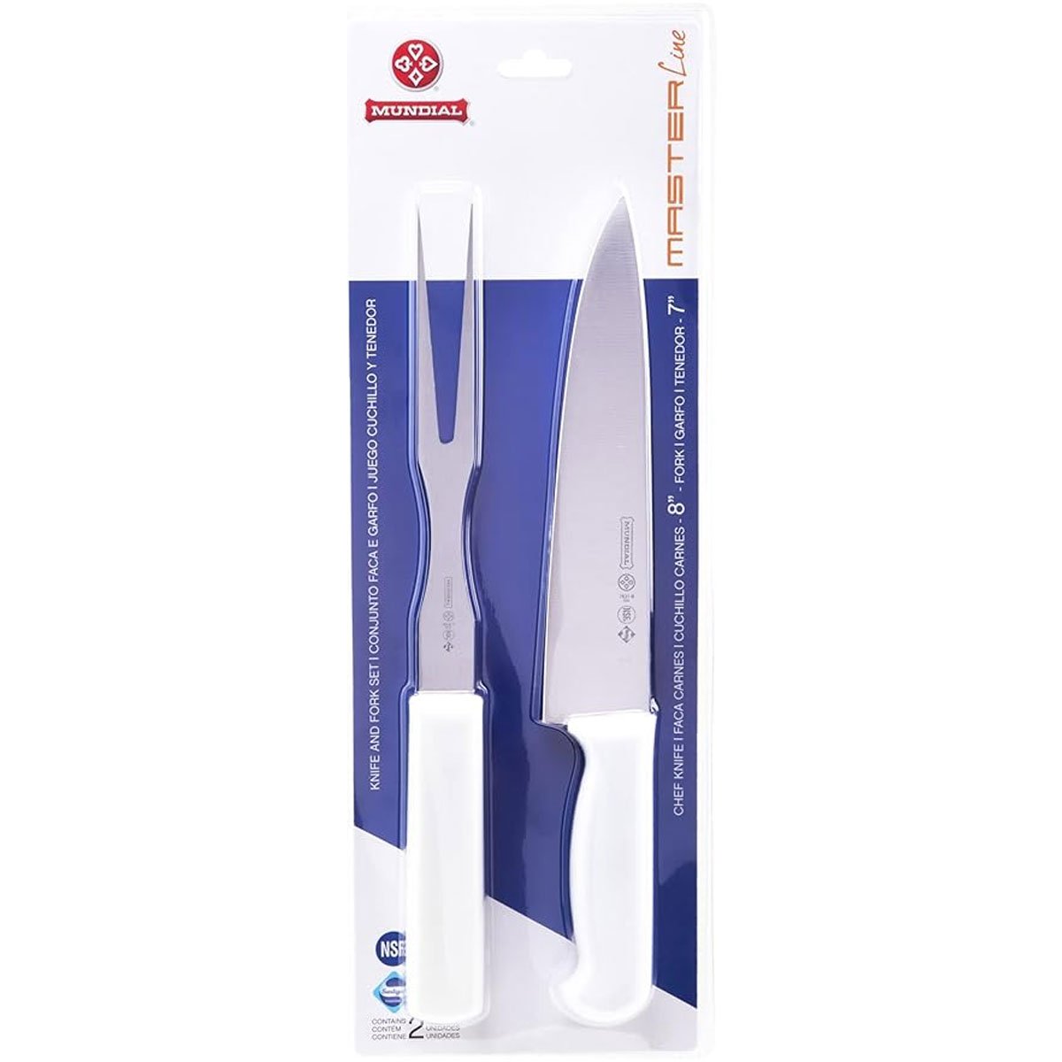 CARACTERÍSTICAS DEL PRODUCTO MEDIDAS – Largo total tenedor : 32cm – Largo de los dientes : 19cm – Largo total cuchillo : 32.5 – Largo de la hoja : 20cm – Hoja de acero inoxidable . – Empuñadura de polipropileno.